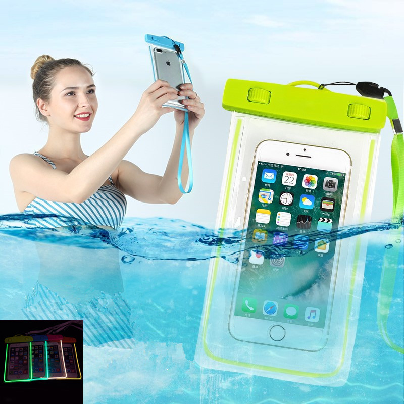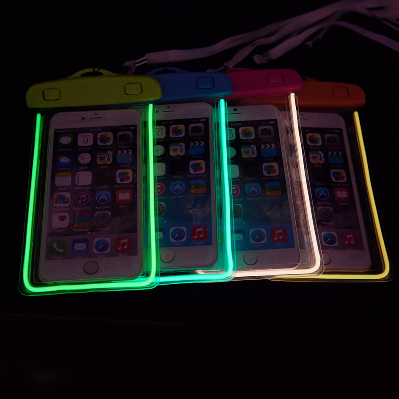 আইফোন 8 এর জন্য নতুন ডিজাইনের হালকা আপ পিভিসি ব্যাগ জলরোধী মোবাইল ফোন কেস