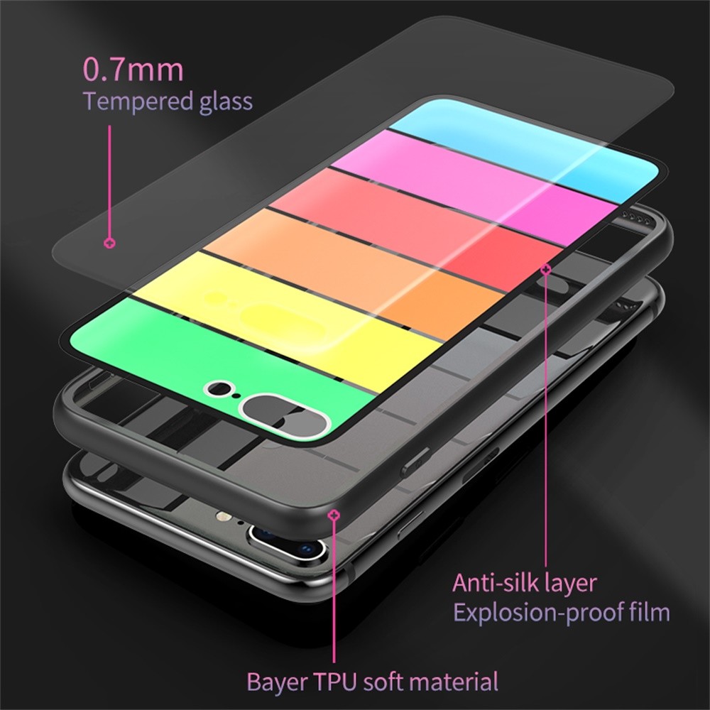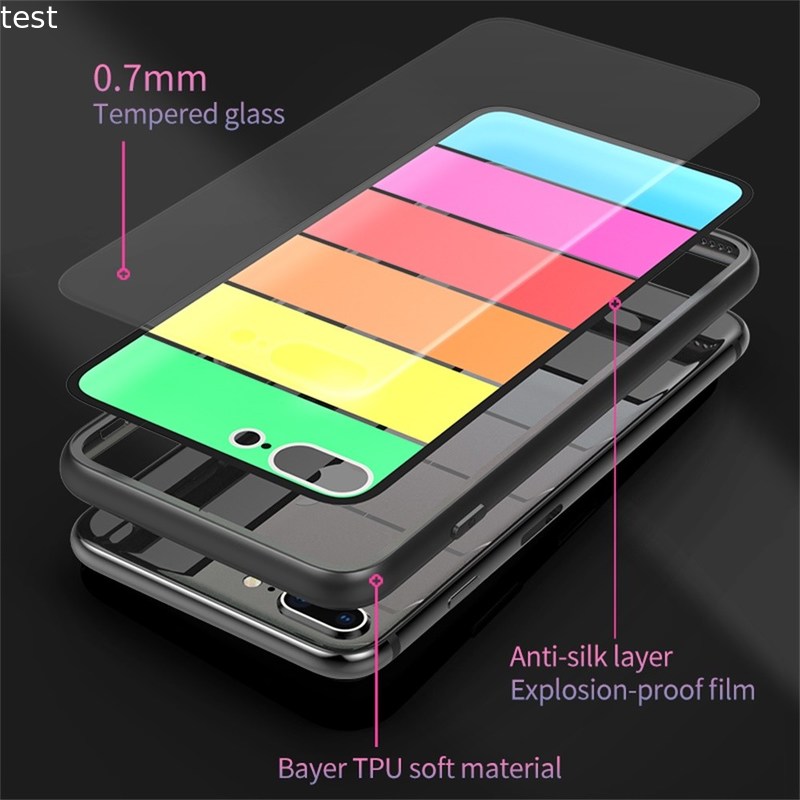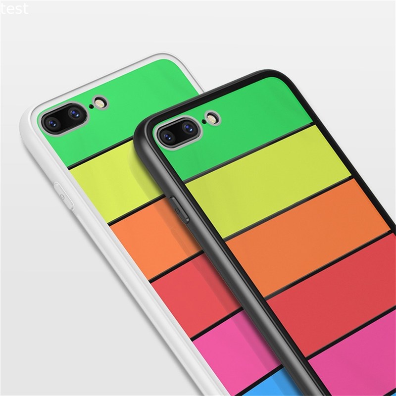 Rainbow slim glass case shell for iphone 7 8 plus Cover for iphone brand