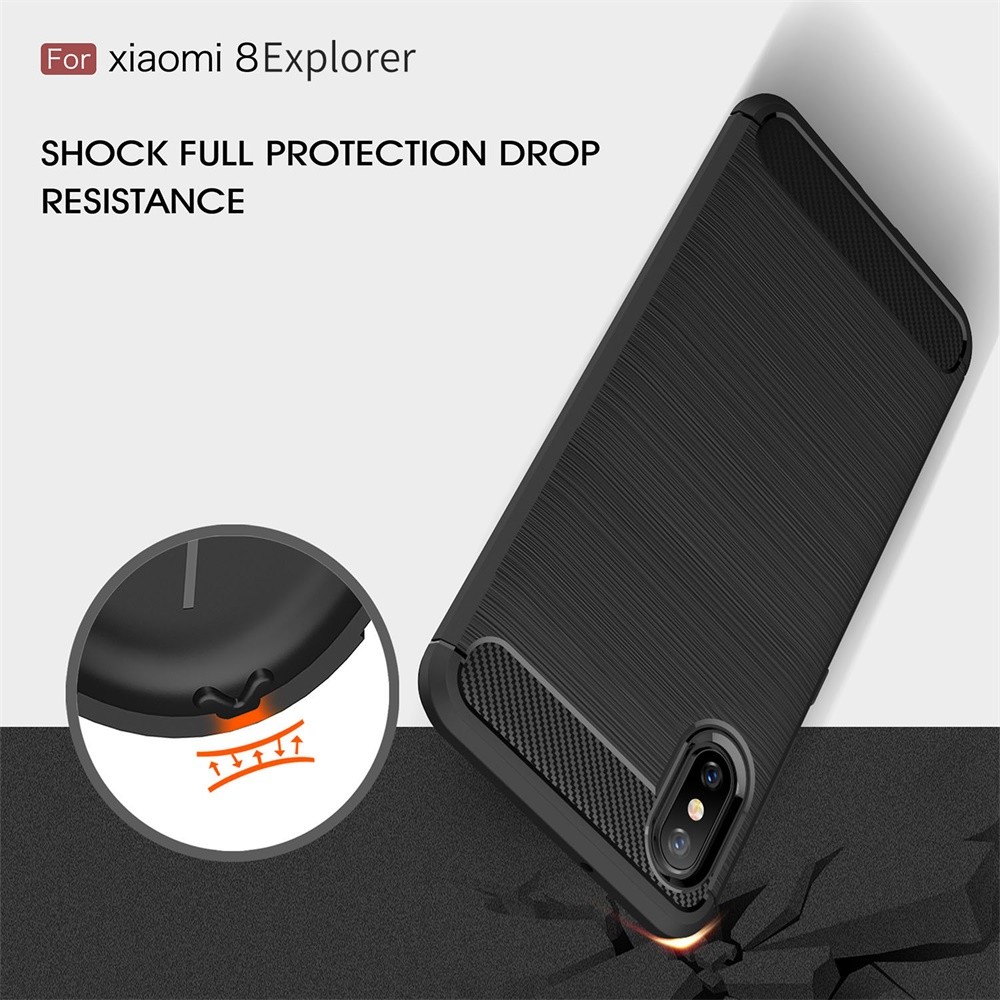 Dành cho Xiaomi Mi 8 Khám phá Ốp silicon Tpu Vỏ bàn chải bằng sợi carbon